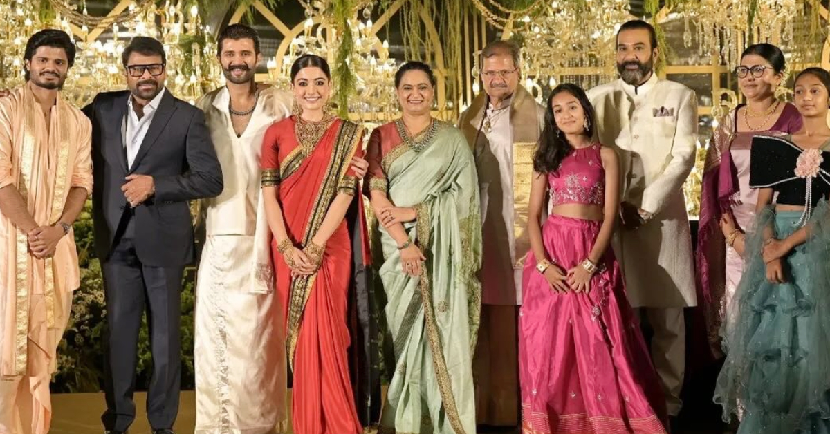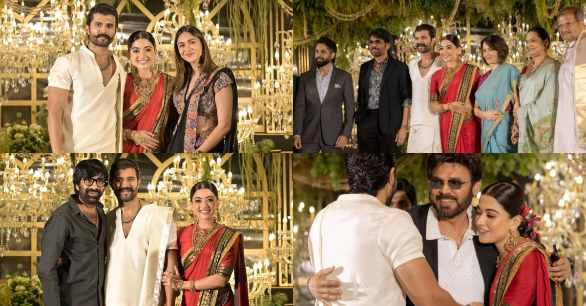 ಮೆಗಾಸ್ಟಾರ್ ಚಿರಂಜೀವಿ (Megastar Chiranjeevi) ಅವರು ಆಗಮಿಸಿ ಟಾಲಿವುಡ್ ರಿಯಲ್ ಕಪಲ್ ವಿಜಯ್- ರಶ್ಮಿಕಾ ಶುಭ ಕೋರಿ ತೆರಳಿದರು. ಅವರ ಕುಟುಂಬದ ಜತೆಗೂ ಫೋಟೋ ಕ್ಲಿಕ್ಕಿಸಿಕೊಂಡರು.